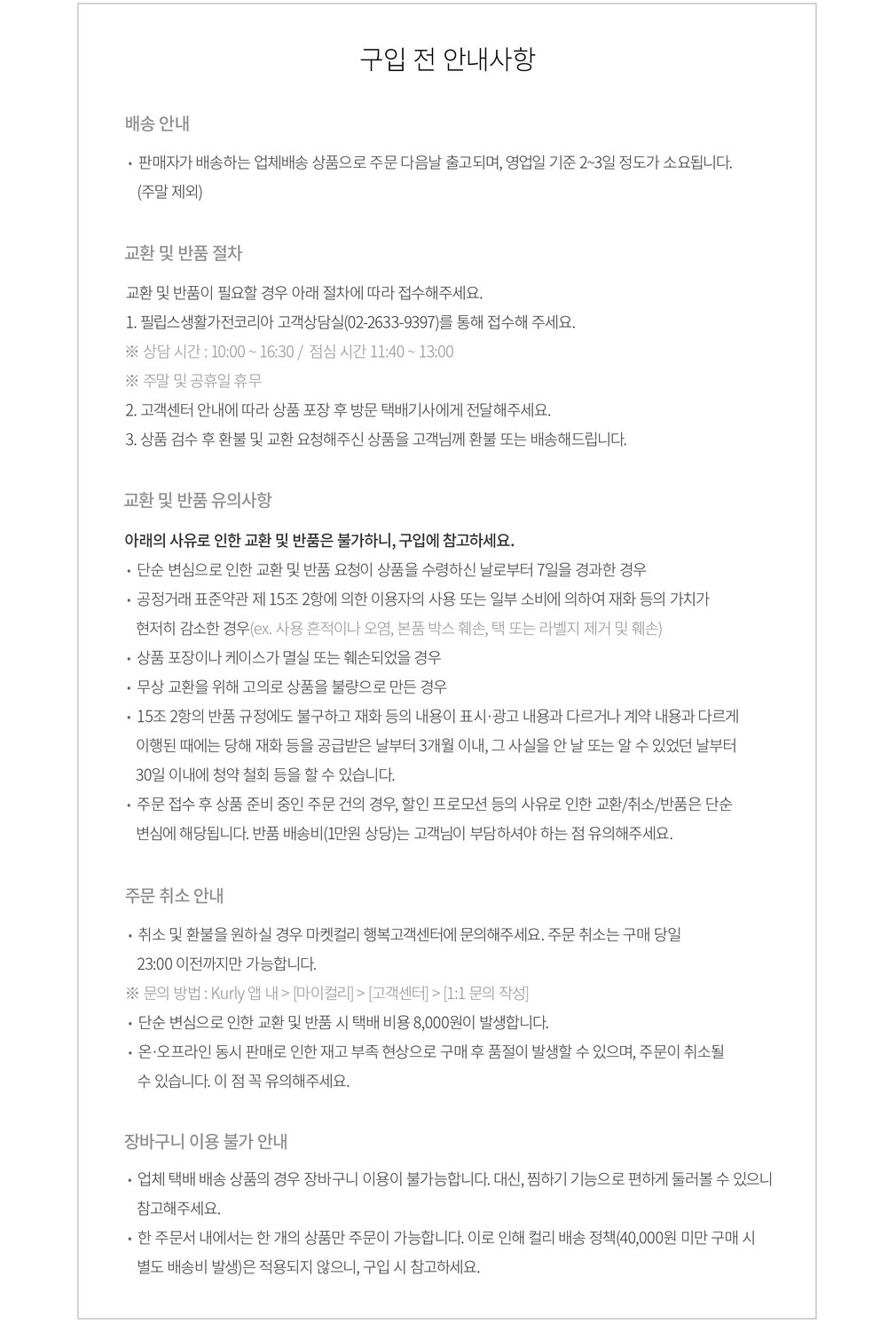 교환 및 환불이 필요하신 경우 [마이컬리 > 주문내역]에서 직접 반품 접수하거나 고객행복센터로 문의해 주시기 바랍니다.