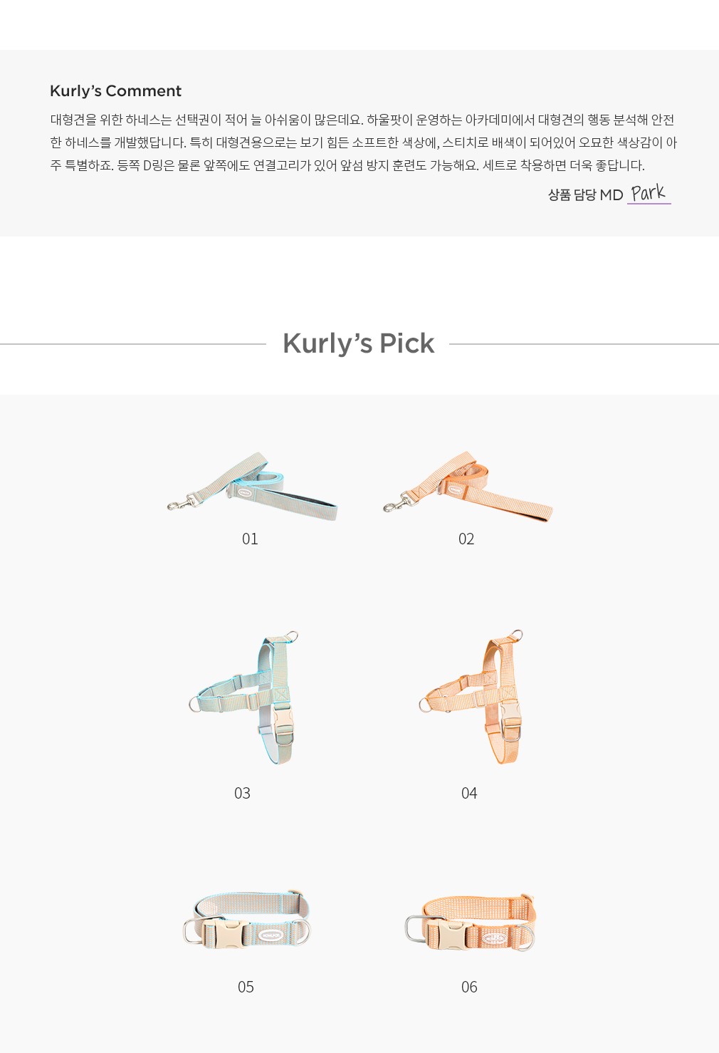 05~06. HCC 라지클럽 목줄 ・ 선택 가이드 : ①블루, ②오렌지 색상 중 선택하세요.