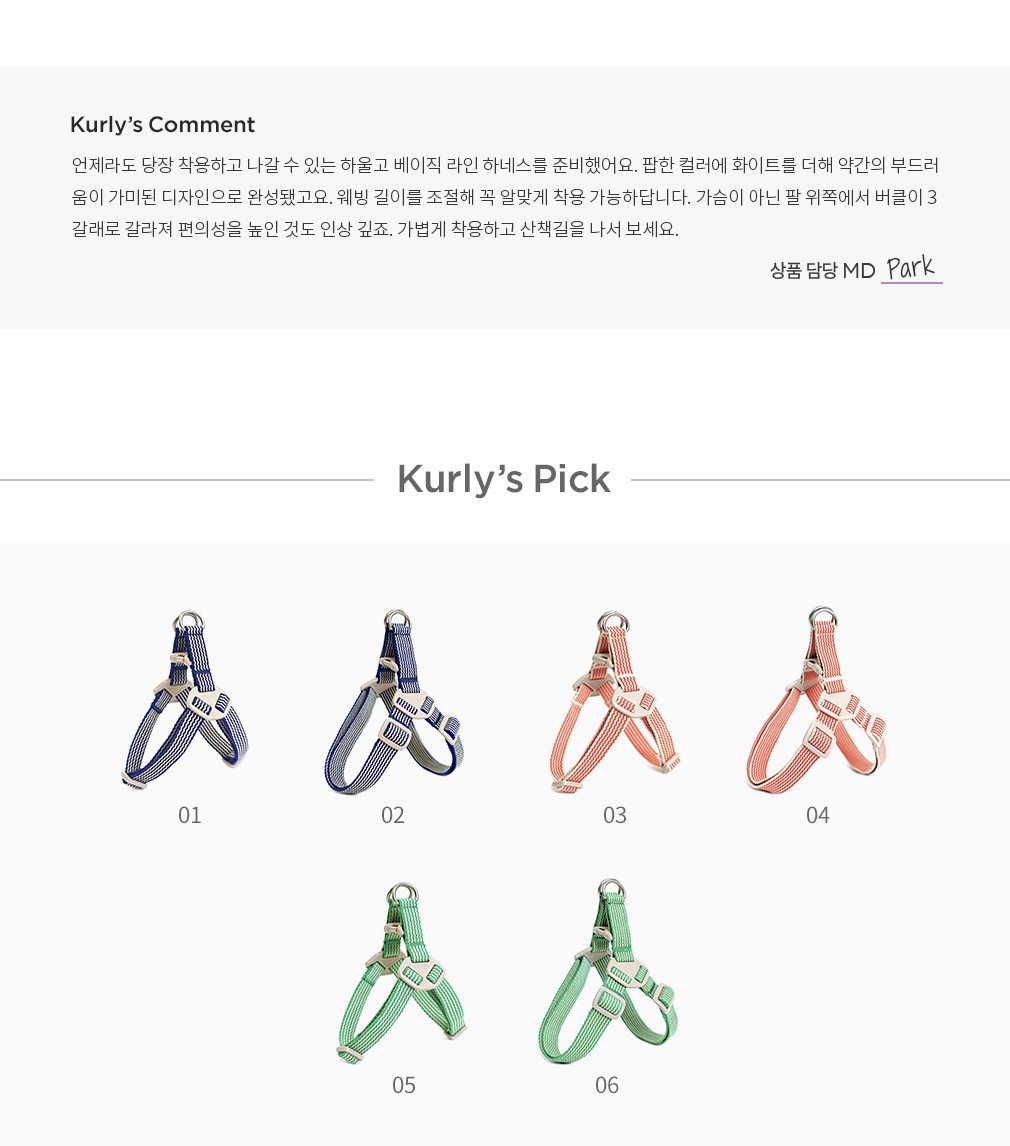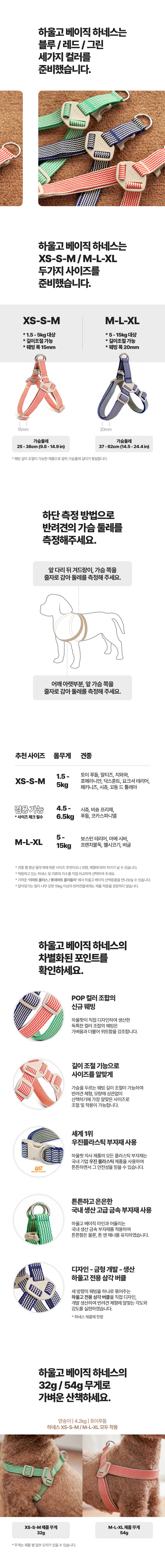 01~06. 하울고 베이직 하네스 ・선택 가이드 : ①블루XS-M, ②블루 M-XL, ③레드 XS-M, ④레드 M-XL, ⑤그린 XS-M, ⑥그린 M-XL 중 선택하세요.