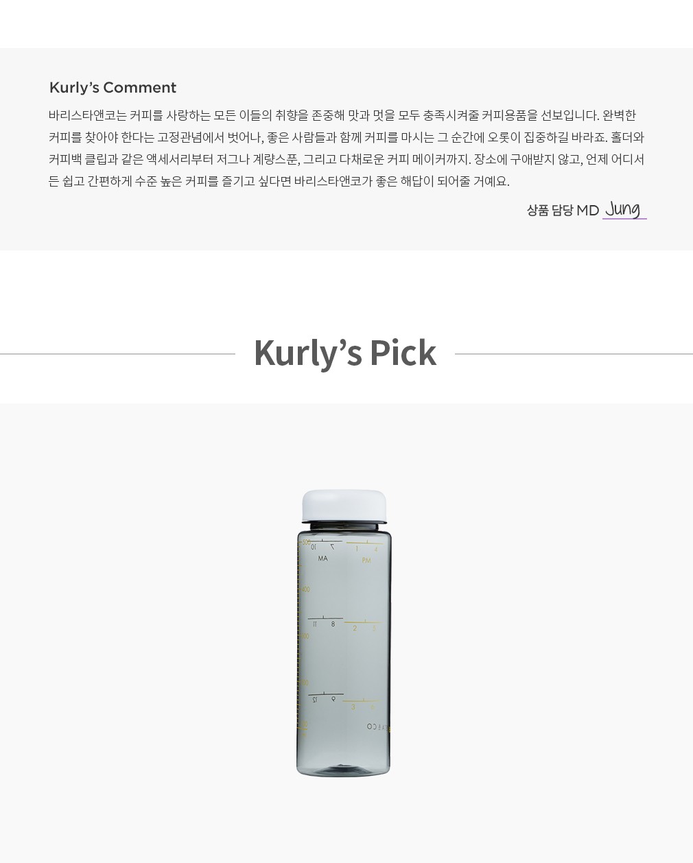 ・특징 : 트라이탄 소재의 물병이에요. 하루의 물 권장량 2L를 위해 디자인을 설계했어요. 한 시간에 한 번씩 물을 마시고, 3시간 후에는 새로운 물을 받을 수 있도록 눈금을 표시했습니다.