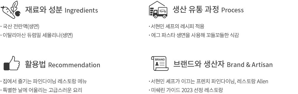 - 알류(달걀), 대두, 밀, 우유, 닭고기, 이산화항 함유 - 본 제품은 메밀, 땅콩, 고등어, 게, 새우, 돼지고기, 복숭아, 토마토, 호두, 쇠고기, 오징어, 조개류(굴, 전복, 홍합 포함), 잣을 사용한 제품과 같은 제조시설에서 제조하고 있습니다.