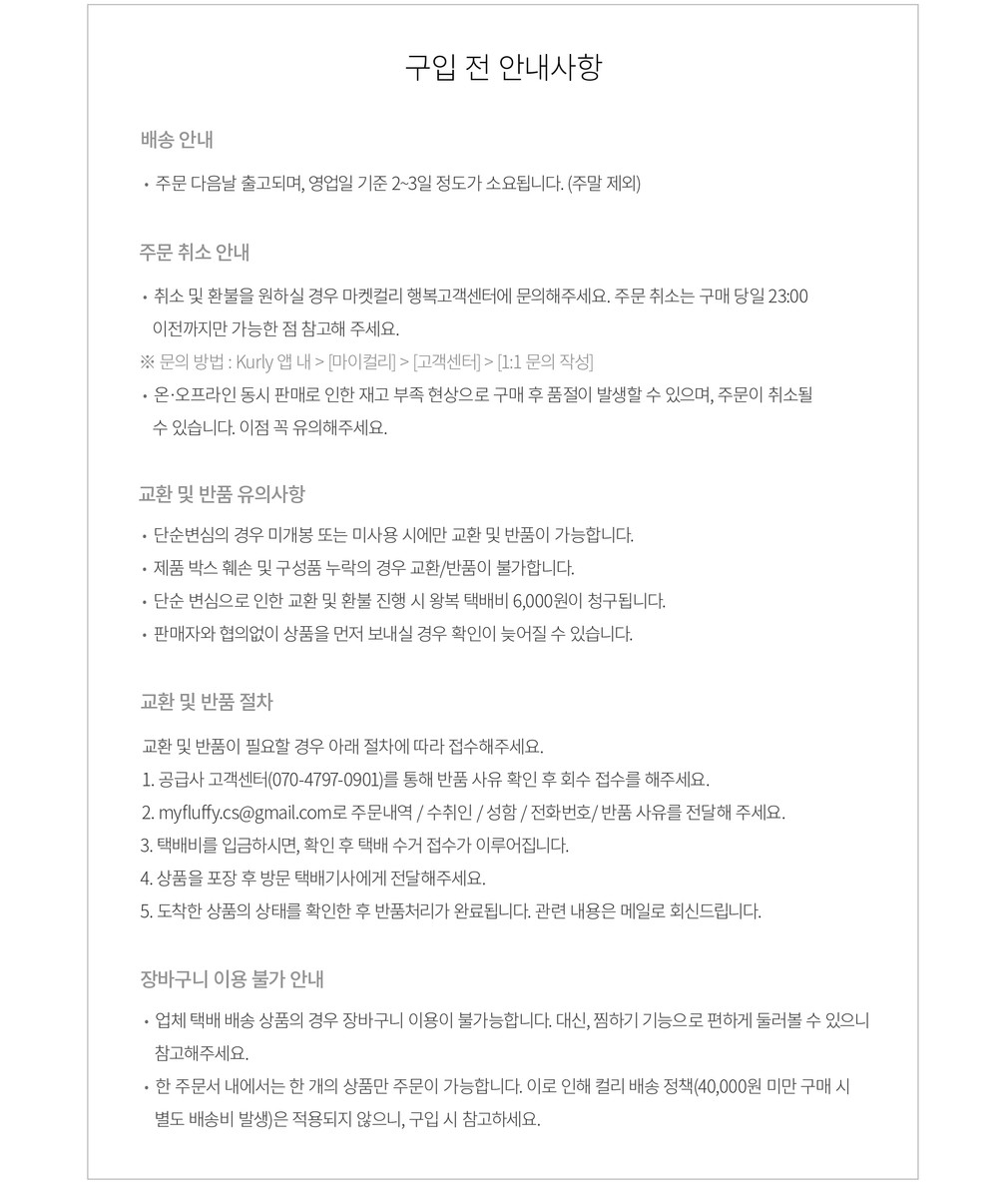 교환 및 환불이 필요하신 경우 [마이컬리 > 주문내역]에서 직접 반품 접수하거나 고객행복센터로 문의해 주시기 바랍니다.