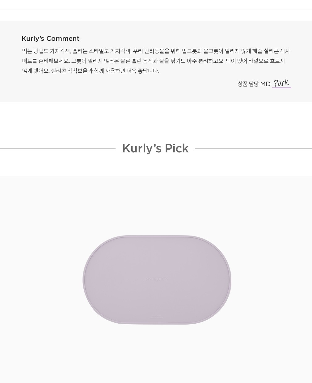 ・특징 : 그릇 아래에 깔아주어 밀림을 방지해주는 실리콘 매트입니다. 넉넉한 너비로 밥그릇과 물그릇 모두 놓을 수 있어요.