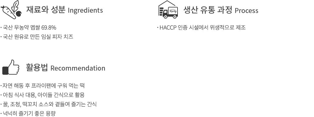 - 우유 함유 - 알류, 우유, 메밀, 땅콩, 대두, 밀, 고등어, 게, 새우, 돼지고기, 복숭아, 토마토, 아황산류, 호두, 닭고기, 쇠고기, 오징어, 조개류(굴, 전복, 홍합 포함), 잣 혼입가능