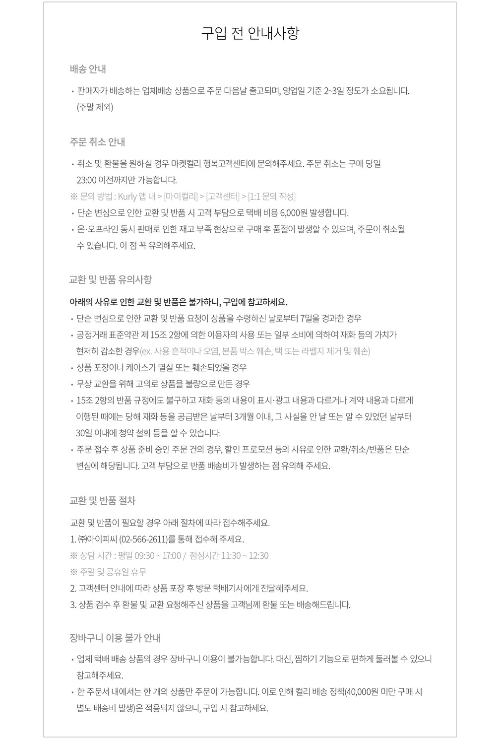 배송관련, 주문(취소/교환/환불)관련 문의 및 요청사항은 마이컬리 내1:1 문의에 남겨주세요.