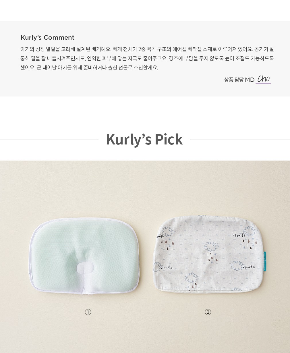 ・ 특징 : 아기의 경추 발달을 고려해 맞춤 설계된 베개입니다. 아기의 신체 발달에 따라 높이 조절이 되도록 젤패드도 함께 들어 있어요.