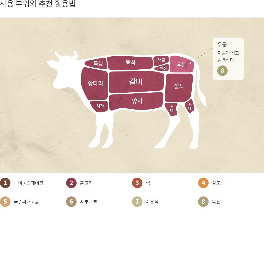 Tip. 컬리에서 다양한 부위의 육전용 소고기를 만날 수 있어요. 우둔, 아롱사태, 부채살 중 취향에 맞게 선택해 보세요.