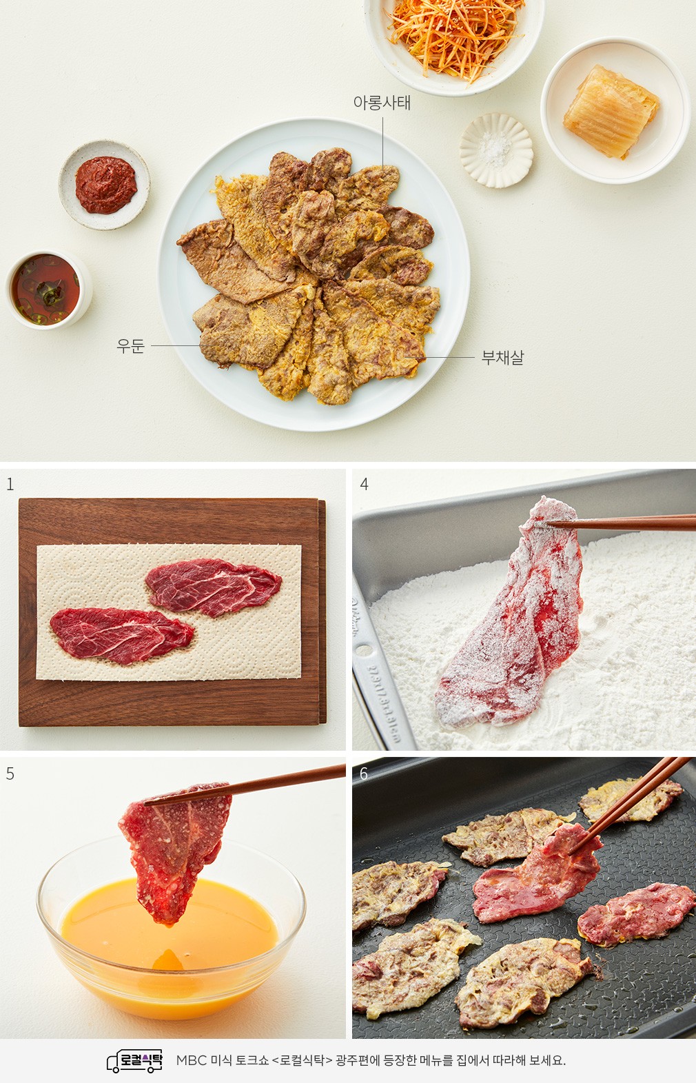 Tip. 고기가 두꺼울 경우 찹쌀가루를 약간 도톰하게 입히는 게 좋고, 반대로 고기가 얇다면 찹쌀가루도 최대한 얇게 입혀야 맛의 밸런스가 좋아요.