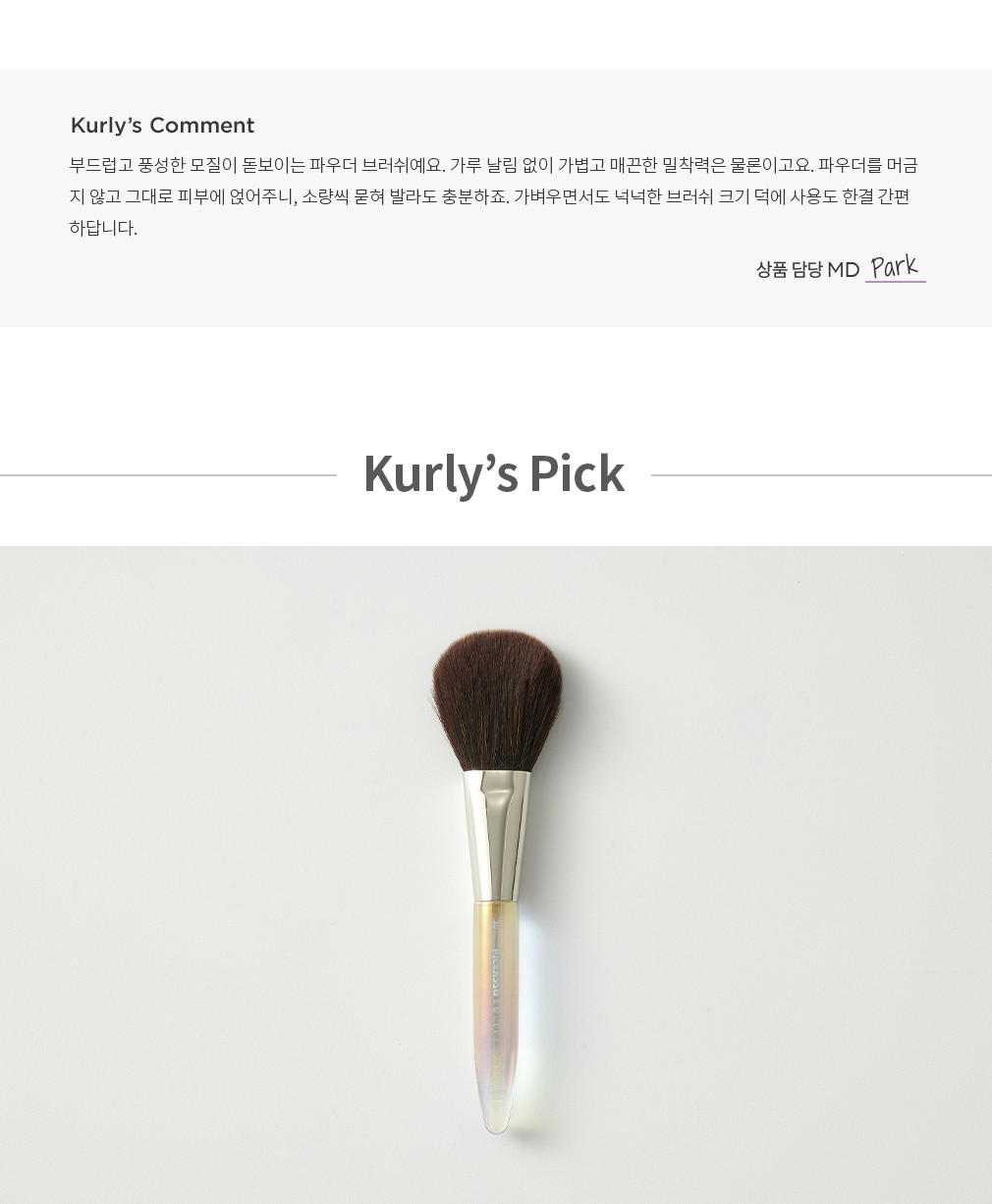 ・특징 : 부드러운 모질과 가벼운 밀착력이 돋보이는 파우더 브러쉬입니다.