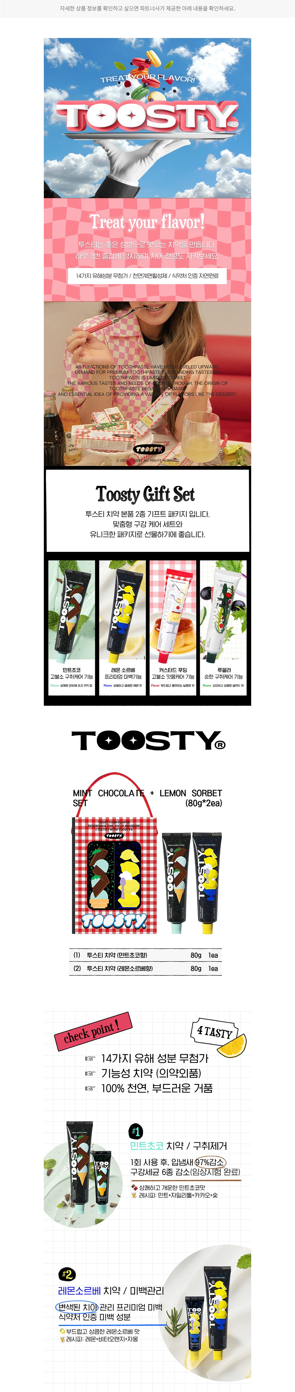 [투스티] 맛있는 민초+레몬 치약 선물세트 (80g*2개입)