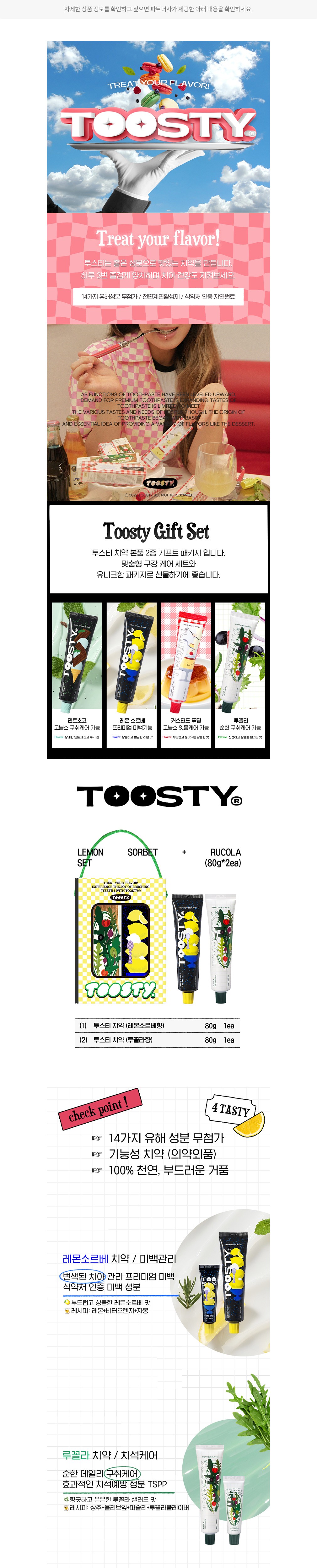 [투스티] 상쾌한 레몬+루꼴라 치약 선물세트 (80g*2개입)