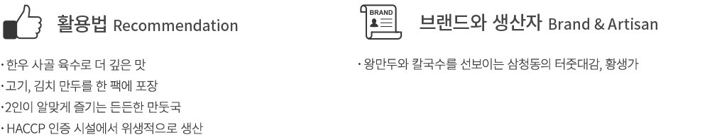 ・특징 : 2인분 양의 떡만둣국을 완성할 수 있는 재료를 한 팩에 담았어요.