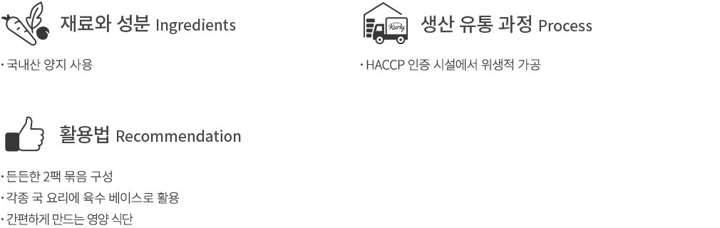 * 쇠고기, 대두, 밀 함유 * 본 제품은 알류, 우유, 땅콩, 메밀, 게, 새우, 닭고기, 토마토, 복숭아, 조개류(굴, 전복, 홍합), 잣, 호두, 아황산류를 사용한 제품과 같은 제조시설에서 제조하고 있습니다.