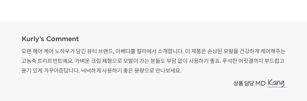 ・특징 : 손상된 모발을 부드럽게 케어해주는 라이트 타입 트리트먼트예요.