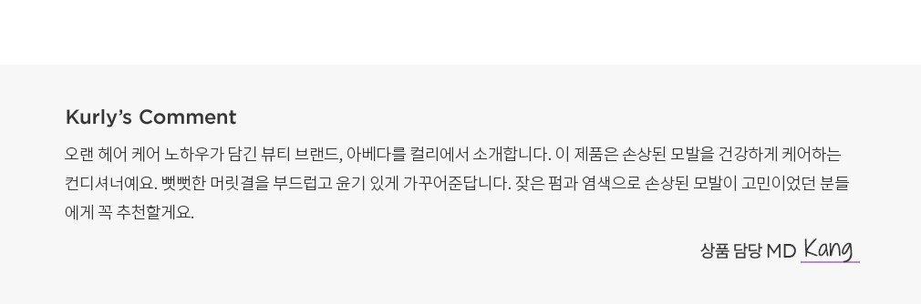 ・사용감 : 뻣뻣한 모발을 부드럽게 케어하고 촉촉한 윤기를 남겨줍니다.