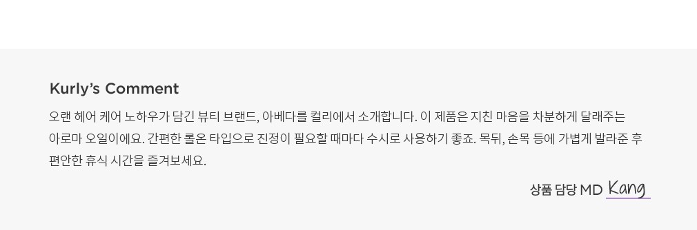 ・향 : 무게감이 느껴지는 차분한 아로마 향이에요.