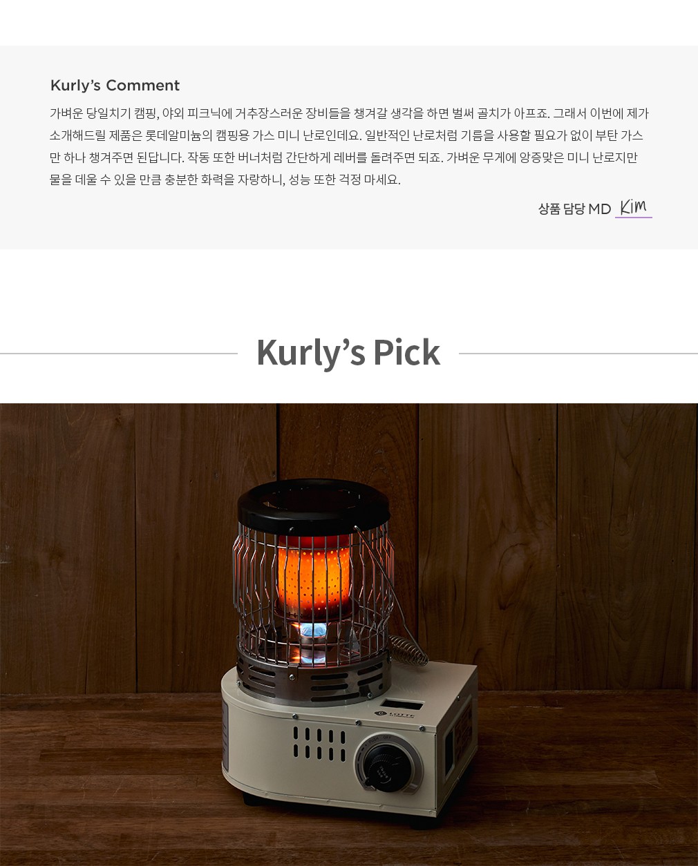 ・특징 : 부탄가스를 넣어 사용하는 캠핑용 난로입니다. 압전 자동 점화 방식으로 레버만 돌려주면 작동시킬 수 있어요.