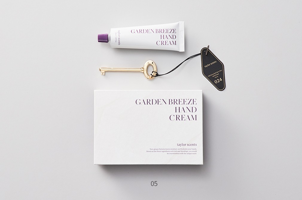 05. 핸드크림 기프트 세트 가든브리즈 ・ 구성 : ①핸드크림 가든브리즈 1개(50mL) , ②골든키 스퀴저 1개, ③메시지 카드 1장