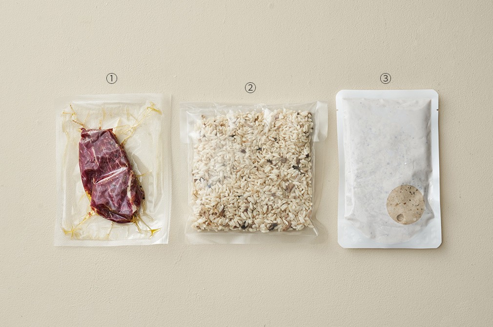 - 포르치니버섯베이스밥 - 버섯크림소스: 대두, 우유, 계란, 닭고기 함유 - seasoned 와규전각 스테이크: 소고기, 대두 함유 - 이 제품은 메밀, 땅콩, 밀, 고등어, 게, 새우, 돼지고기, 복숭아, 토마토, 아황산류, 호두, 오징어, 조개류(굴, 전복, 홍합포함), 잣을 사용한 제품과 같은 제조시설에서 제조하고 있습니다.