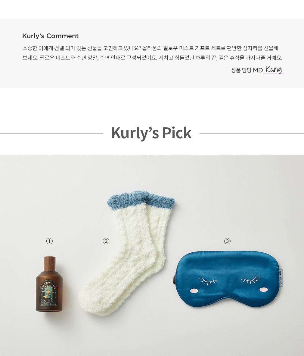 필로우 미스트 3종 기프트 세트 ・ 구성 : ①유니버스 드림 필로우 미스트, ②수면 양말, ③수면 안대