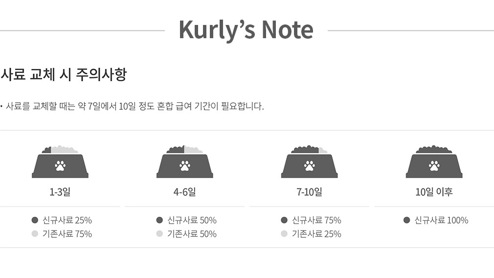 ・습식 사료는 첫 급여 시 충분한 적응 기간을 두고 전환해야 해요. 급여 전, 하단 컬리스 노트를 꼼꼼히 읽어 주세요.