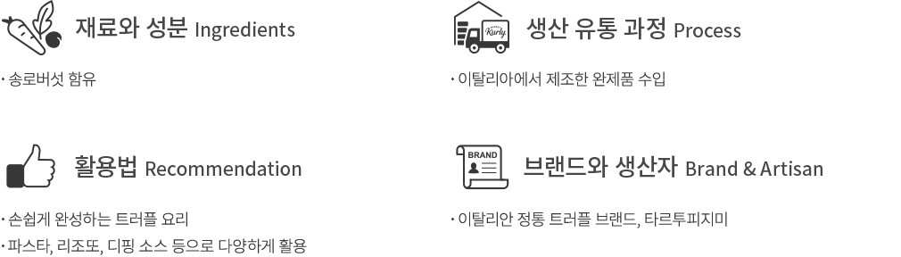 ・특징 : 트러플의 고급스러운 풍미가 가득 담겨있어요. 평소에 트러플 요리를 즐겨 드시는 분에게 추천해 드립니다.