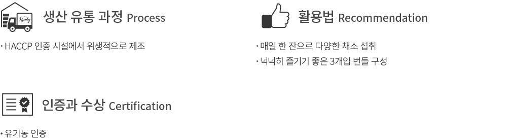 - 퍼플, 오리지널, 비타에센스: 토마토 함유 / 우유, 대두, 땅콩, 밀을 사용한 제품과 같은 제조시설에서 제조 - 뿌리채소: 우유, 토마토, 대두, 땅콩, 밀을 사용한 제품과 같은 제조시설에서 제조