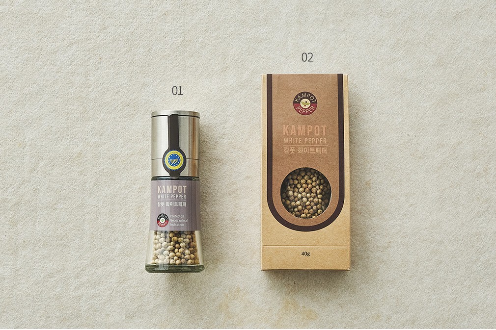 01~02. 캄폿 화이트 페퍼 ・선택 가이드 : ①그라인더(40g), ②리필용(40g) 중 선택하세요.