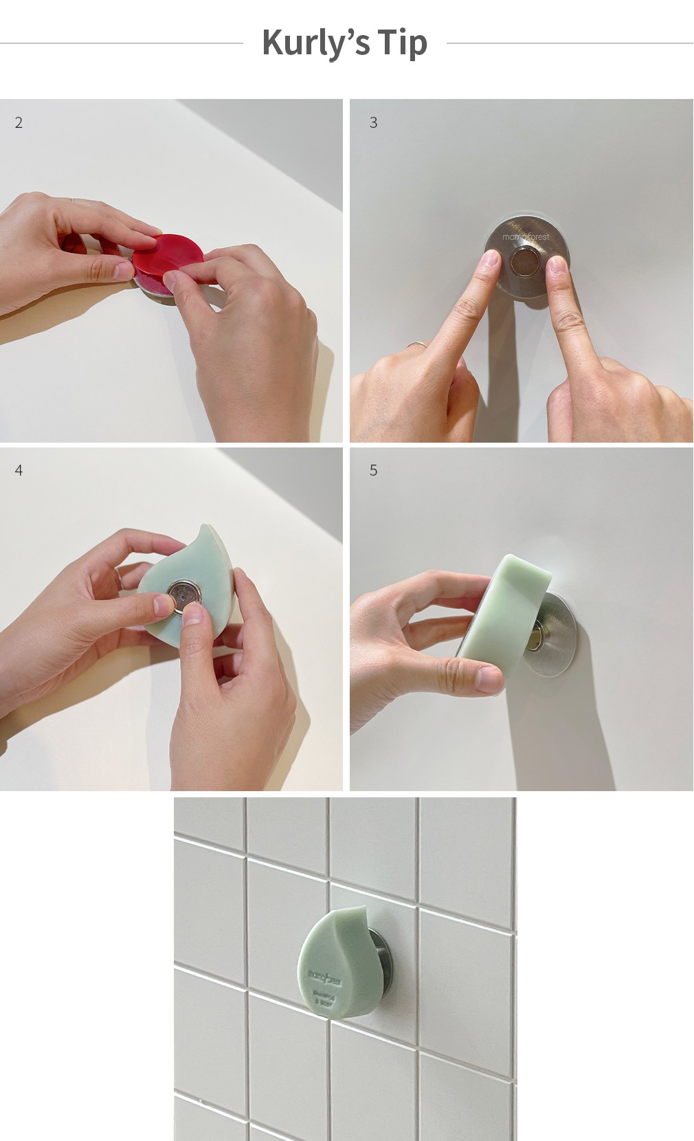 사용법 1. 부착할 벽면이 평평한지 확인한 뒤 물기가 없도록 깨끗하게 닦아주세요.