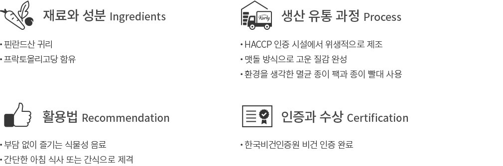 본 제품은 우유, 대두, 땅콩, 밀, 계란, 토마토, 복숭아, 호두, 닭고기를 사용한 제품과 같은 제조 시설에서 제조하고 있습니다.