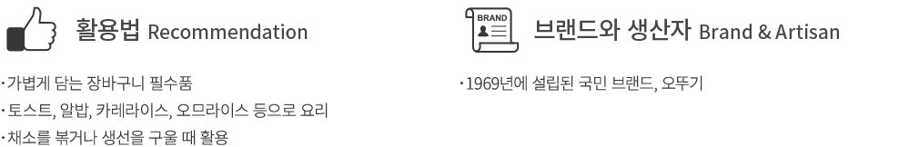 오뚜기의 식물성 마가린을 컬리에서 만나 보세요. 마가린에 들어가는 기름은 오직 식물성 제품만을 사용하였답니다. 부드럽고 깔끔한 맛이라 활용도가 높아요. 토스트에 바르거나 알밥, 카레라이스, 오므라이스에 곁들여도 좋고요. 채소 볶음, 생선 구이와도 잘 어울리죠. 부담스럽지 않은 용량으로 일부러 마트에 가지 않고도 집에서 편하게 받아 볼 수 있도록 준비했습니다. 꼭 필요한 순간, 장바구니에 쏙 담아보세요.