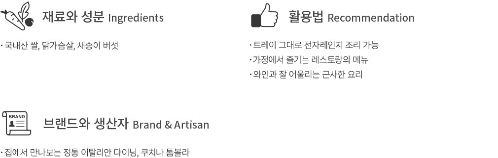 - 닭고기, 우유, 계란, 대두, 밀 함유 - 이 제품은 토마토, 돼지고기, 잣, 새우, 쇠고기, 호두, 조개류(바지락)를 사용한 제품과 같은 제조시설에서 제조하고 있습니다.