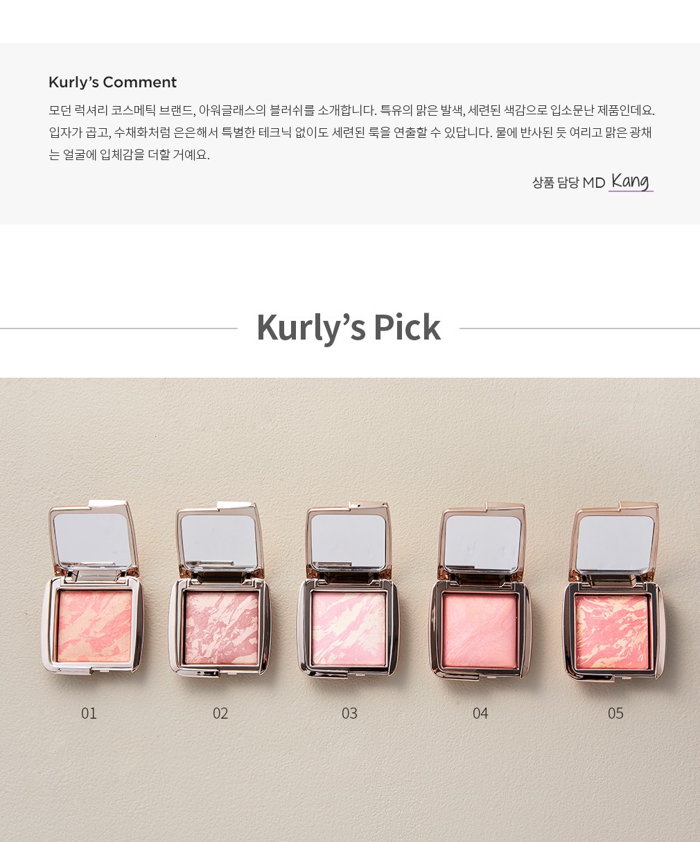 활용팁 ・은은한 수채화 발색이 특징인 베이크드 타입 블러셔입니다. 브러쉬와 함께 사용하면 한결 고르고 맑은 발색을 누릴 수 있어요.