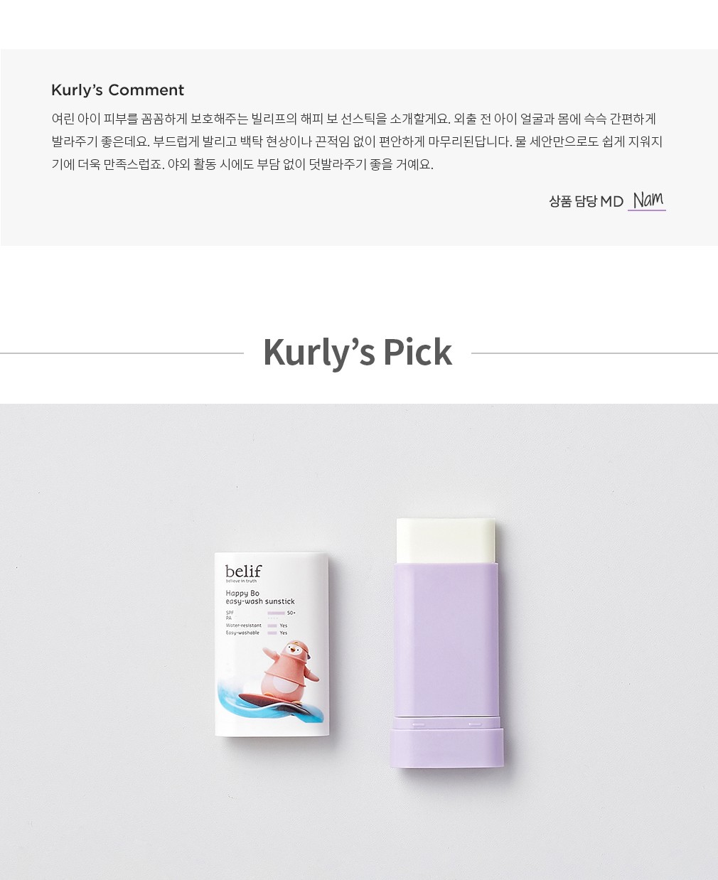 ・ 특징 : 아이 얼굴과 바디 피부에 간편하게 발라주기 좋은 선스틱입니다.