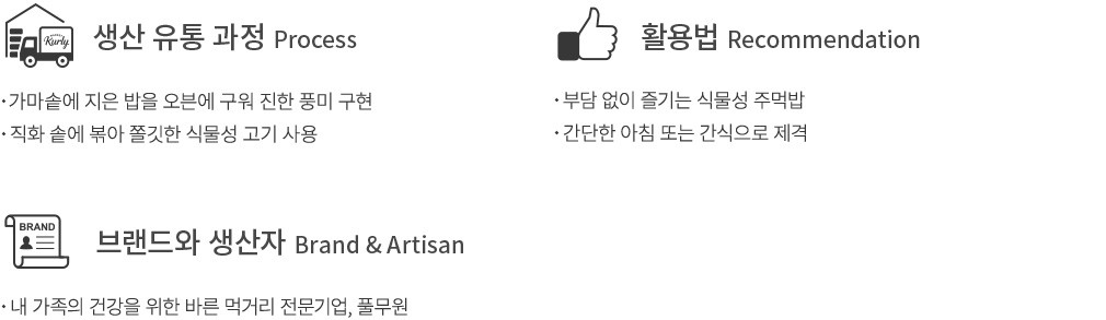 * 식물성 지구식간 솥솥 불고기 주먹밥 : 대두, 밀 함유 * 식물성 지구식단 솥솥 비빔 주먹밥: 대두, 밀 함유 * 이 제품은 우유, 메밀, 땅콩, 고등어, 게, 새우, 돼지고기, 복숭아, 토마토, 아황산류, 호두, 닭고기, 쇠고기, 오징어, 잣, 알류, 조개류(굴, 전복, 홍합 포함)을 사용한 제품과 같은 제조시설에서 제조하고 있습니다.