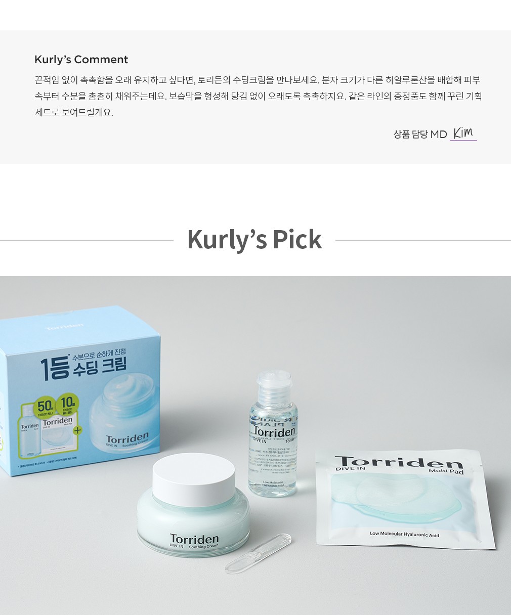 [토리든] 다이브인 저분자 히알루론산 수딩크림 80ml 기획 세트 (수딩크림80ml+토너50ml+멀티패드10매)