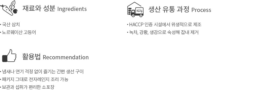 - 고등어 구이 : 대두, 밀, 고등어, 쇠고기, 조개류(굴) 함유 - 삼치 / 임연수 구이 : 대두, 밀, 쇠고기, 조개류(굴) 함유 - 계란, 우유, 메밀, 땅콩, 고등어, 게, 새우, 돼지고기, 복숭아, 토마토, 아황산류, 호두, 닭고기, 오징어 , 조개류(전복, 홍합 포함), 잣 혼입가능