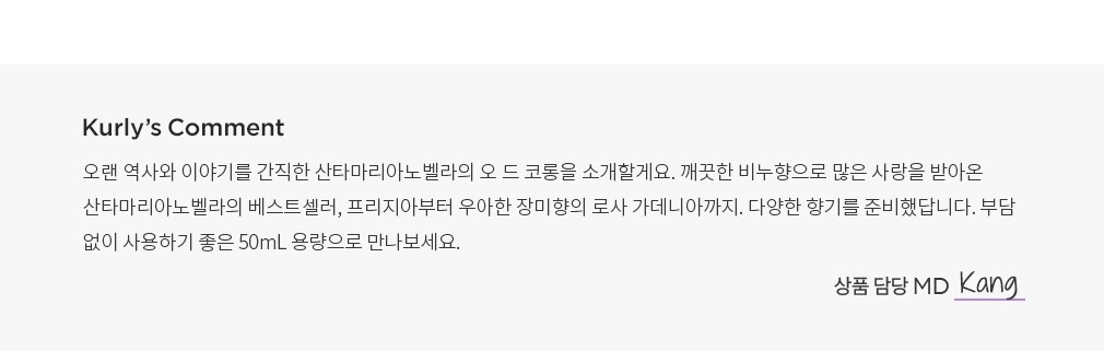 ・ 특징 : 장미와 가데니아가 어우러진 부드럽고 깨끗한 플로럴 머스키 향이에요.