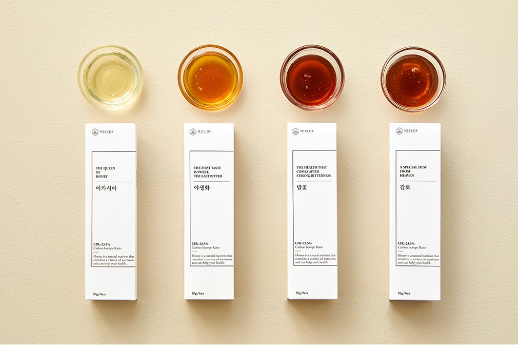 꿀의 차이를 확인하세요 ・NO.5 선물세트에 담긴 4종류의 벌꿀은 저마다 다른 색과 맛을 가지고 있어요. 각 꿀의 특징을 비교해가며 드셔 보세요.