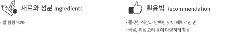 ・특징 : 적당히 탄력 있는 식감의 얇은 면으로, 국물 요리에 잘 어울립니다.