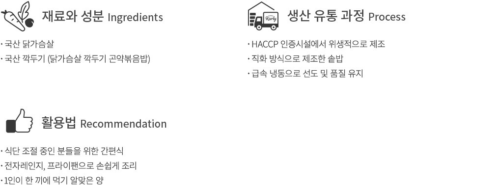 불고기맛 곤약볶음밥 - 계란, 대두, 밀, 닭고기, 쇠고기, 조개류(굴) 함유 - 이 제품은 우유, 메밀, 땅콩, 고등어, 게, 새우, 돼지고기, 복숭아, 토마토, 아황산류, 호두, 오징어, 조개류(전복, 홍합 포함)을 사용한 제품과 같은 시설에서 제조하고 있습니다. 새송이카레 곤약볶음밥 - 대두, 밀, 쇠고기, 닭고기 함유 - 이 제품은 계란, 돼지고기, 우유, 새우, 토마토, 오징어, 게, 메밀, 땅콩, 고등어, 복숭아, 아황산류, 호두, 조개류(굴, 전복, 홍합 포함)을 사용한 제품과 같은 시설에서 제조하고 있습니다. 깍두기 곤약볶음밥 - 우유, 대두, 밀, 새우, 닭고기, 쇠고기, 오징어, 홍합 함유 - 이 제품은 계란, 메밀, 땅콩, 고등어, 게, 돼지고기, 복숭아, 토마토, 아황산류, 호두, 조개류(굴, 전복 포함)를 사용한 제품과 같은 제조시설에서 제조하고 있습니다.