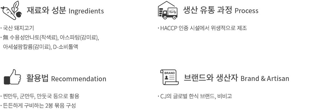 - 대두, 밀, 돼지고기, 계란 함유 - 이 제품은 알류, 우유, 메밀, 땅콩, 고등어, 게, 새우, 쇠고기, 복숭아, 토마토, 아황산류, 호두, 닭고기, 오징어, 조개류(굴, 전복, 홍합 포함), 잣을 사용한 제품과 같은 시설에서 제조