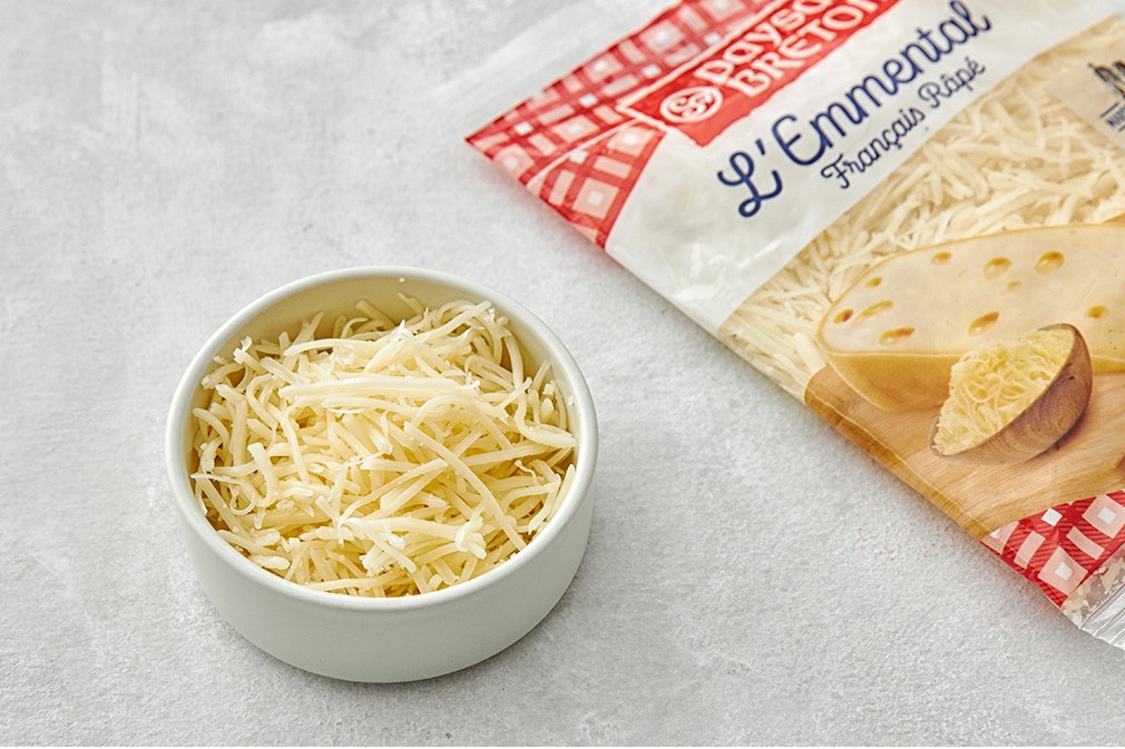 프랑스를 대표하는 유제품 브랜드, 페이장브레통의 에멘탈 슈레드 치즈를 소개할게요. 특유의 치즈 구멍이 매력적인 에멘탈 치즈는 식감이 부드럽고 은은한 과일과 너트의 풍미를 느낄 수 있는데요. 에멘탈 치즈를 더욱 간편하게 즐길 수 있도록 가늘게 슬라이스해 한 봉에 담았어요. 별도로 그레이터를 준비하지 않아도 언제든 고소하고 부드러운 치즈를 즐길 수 있죠. 뜨거운 열에 빠르게 녹으니, 피자나 파스타 등 다양한 요리의 토핑으로 활용하기에도 제격이고요. 그릇에 녹여 퐁듀용 치즈로 활용해도 참 좋을 거예요.