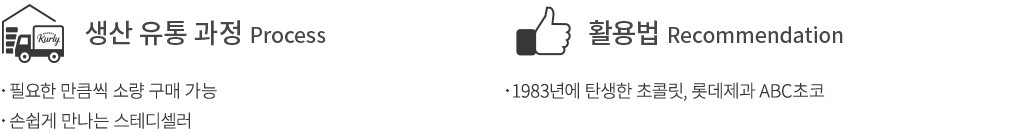 누구나 한 번쯤 이 작은 초콜릿의 묘한 중독성에 빠져본 경험이 있을 거예요. 컬리는 달콤한 ABC 초콜릿을 넉넉한 용량으로, 마트나 편의점에 일부러 나가지 않아도 집에서 편하게 즐길 수 있도록 준비했답니다. 달콤함이 필요한 순간, 한 알씩 기분 좋게 즐겨보세요.
