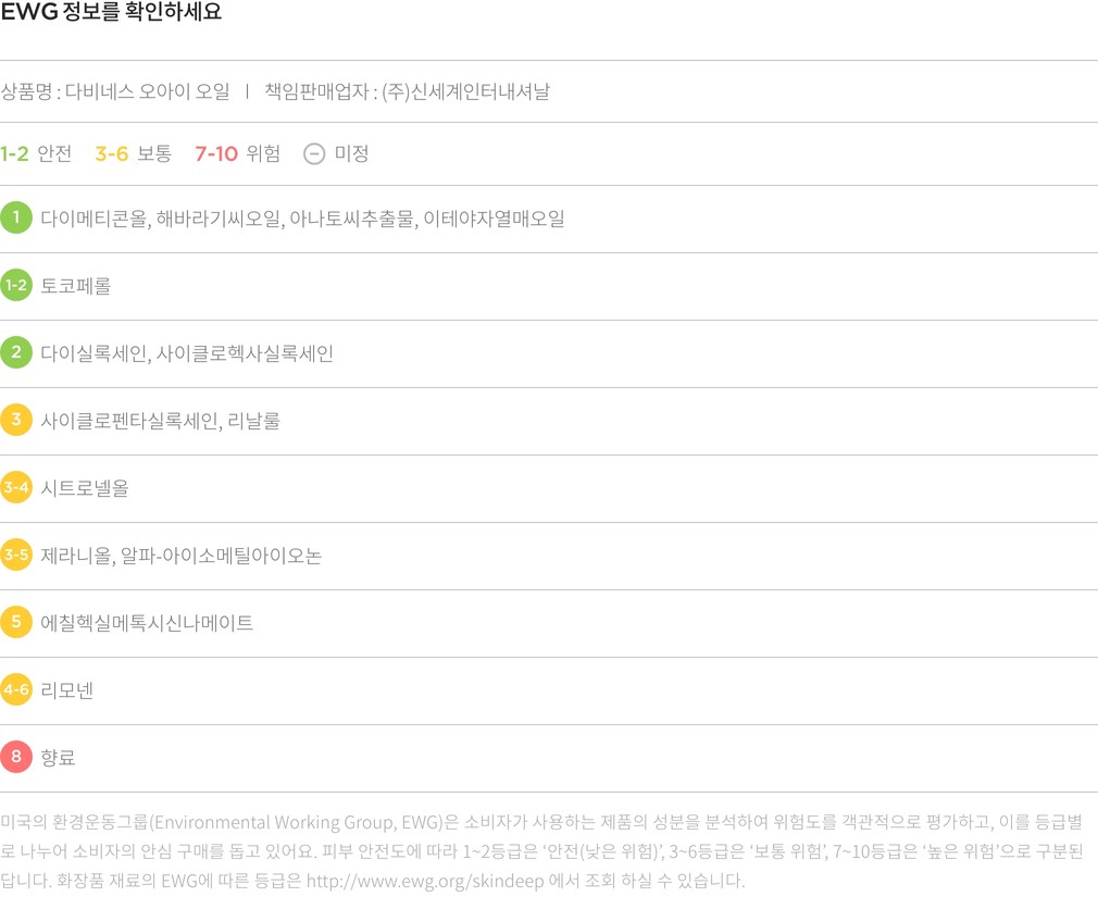 추천 루틴 ・ 오일 사용 전 다비네스의 OI 올인원 밀크를 발라 보세요. 한결 윤기나고 촉촉한 헤어 스타일을 오래 유지할 수 있어요.