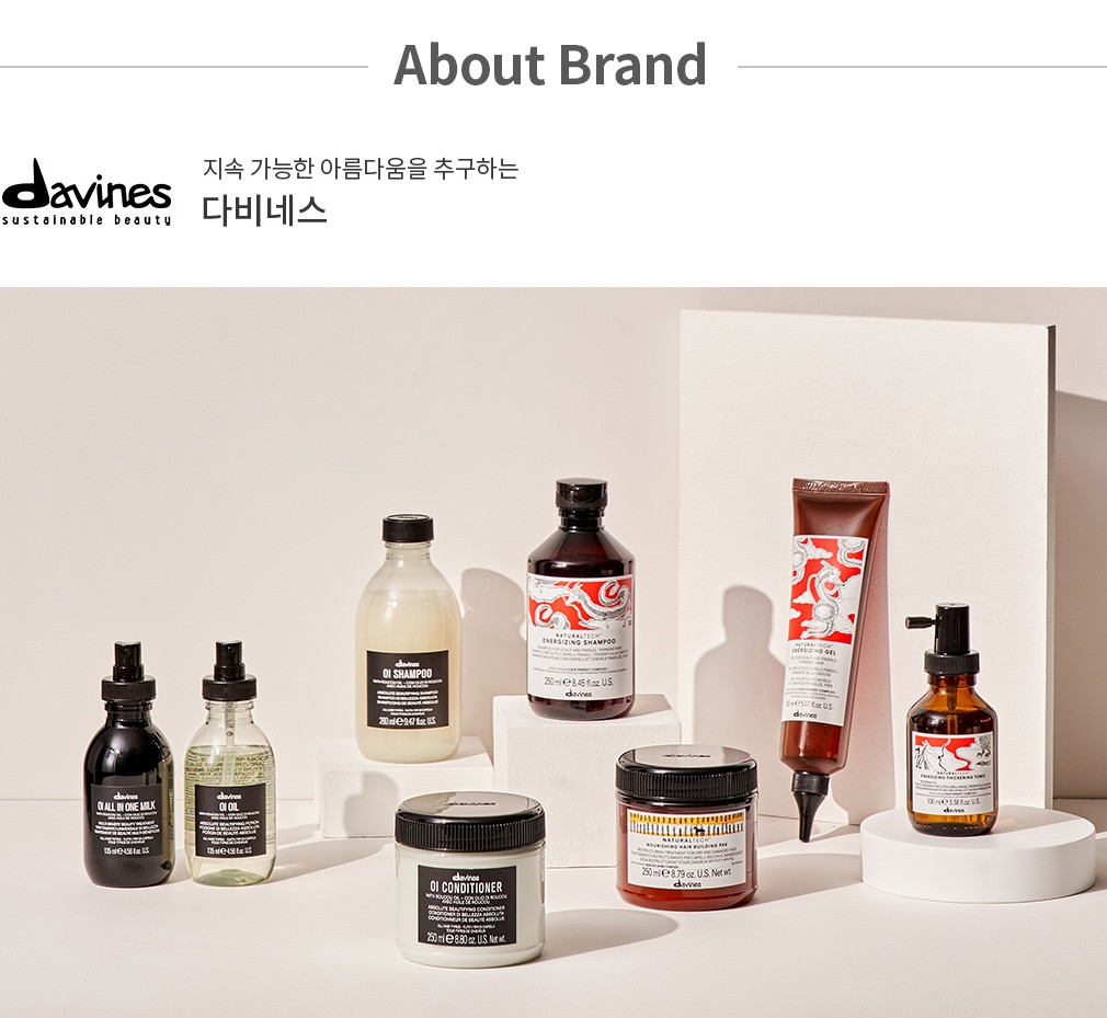 다비네스는 1983년 이탈리아에서 시작된 럭셔리 헤어케어 브랜드예요. 고급 헤어살롱에서 전문가들이 사용하는 제품으로 이미 유명한데요. 두피와 모발 타입별로 세분화된 라인을 통해 다양한 제품을 선보이고 있죠. 하나 눈여겨봐야 할 점은 모든 제품이 별도의 위탁 없이 생산된다는 거예요. 좋은 토양과 공기를 갖춘 이탈리아 파르마의 전용 빌리지에서 100% 완제품으로 제작되고 관리되지요. 또한 ‘지속 가능한 아름다움’이란 철학 아래 피부는 물론 환경에 미치는 영향까지 고려하는 진정성 있는 행보를 이어가고 있답니다.