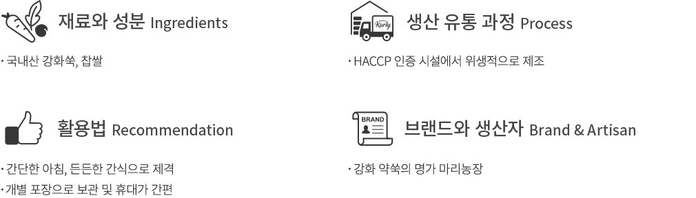 구입 전 참고사항 ・마리농장의 인절미는 유화제가 첨가되어 있지 않아 해동 후에도 완전히 부드러워지지 않아요. 인절미 본연의 식감을 즐길 수 있도록, 하단의 조리법을 참고하여 조리해 드시는 것을 추천합니다.