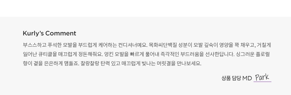 ・ 특징 : 부스스하고 엉킨 모발을 부드럽게 케어하는 컨디셔너입니다.