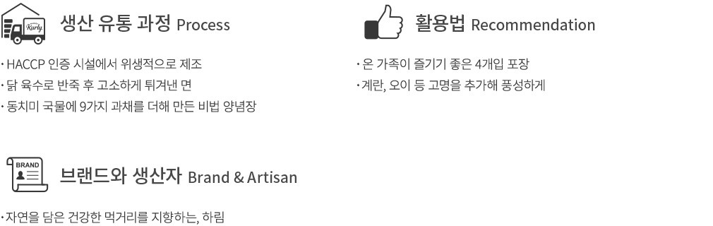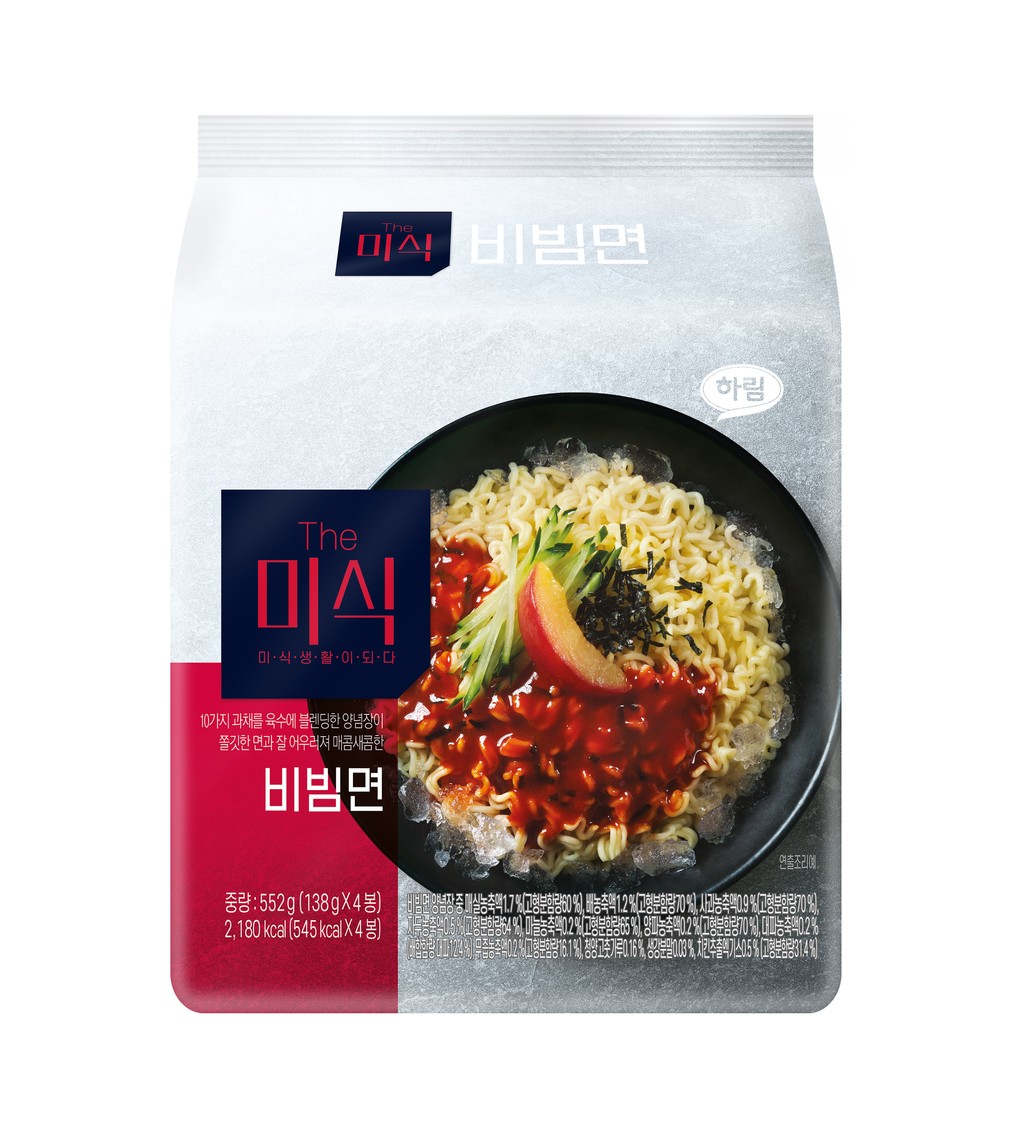 오랜 시간 동안 신선한 고기로 우리의 식탁을 책임져 온 하림. 이번에 하림은 그 비법과 노하우를 담은 더 미식 비빔면을 선보입니다. 시원한 동치미 국물에 자두, 매실 등 9가지 과채를 더해 새콤달콤한 비법 양념장을 완성했어요. 닭 육수로 반죽해 튀긴 면은 쫄면처럼 탱글탱글한 식감에 감칠맛까지 남달라요. 간편하게 끓여서 조리할 수 있는 하림 더 미식의 비빔면으로 만족스러운 한 끼 식사를 즐겨 보세요.