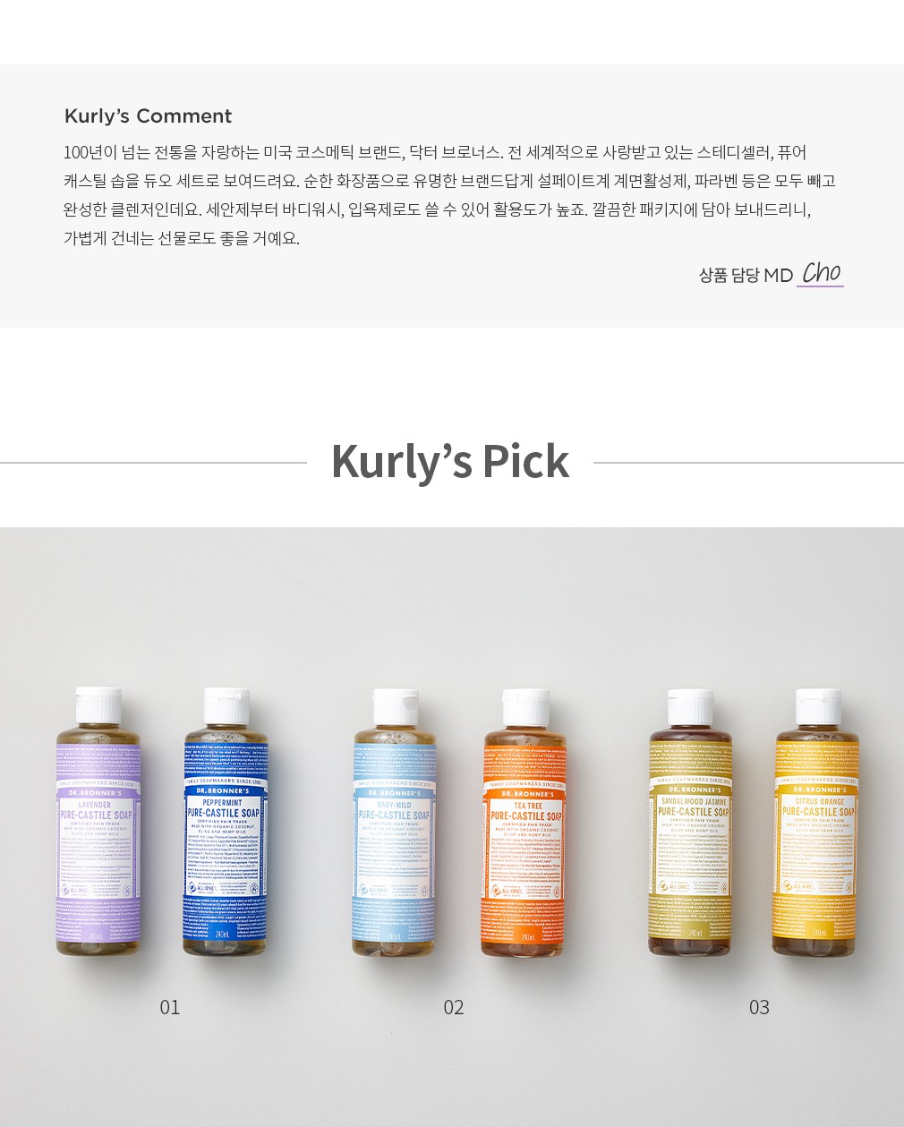 [닥터브로너스] 퓨어 캐스틸 솝 240ml 듀오 3종 (택1)